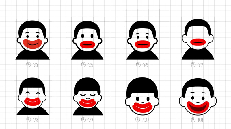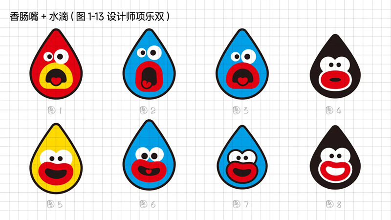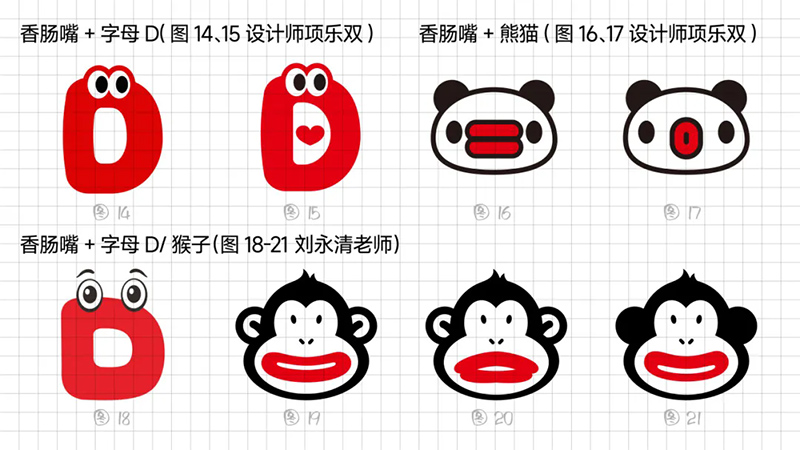 一開始使用最常規(guī)的多符號相加的符號創(chuàng)作套路,即“香腸嘴+熊貓”“香腸嘴+水滴”“香腸嘴+猴子”“香腸嘴+字母D”。