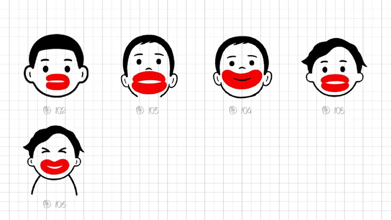 2)表情夸張:從嘴唇的形態(tài)探索,到形態(tài)上微笑的彎曲弧度大小、到燙到呼氣的表情、到燙到吐舌頭變化調(diào)整的嘗試,想用五官輔助表達(dá)燙的瞬間,去抓驚訝、小心翼翼喝熱水或喝熱水舒服的表情瞬間。